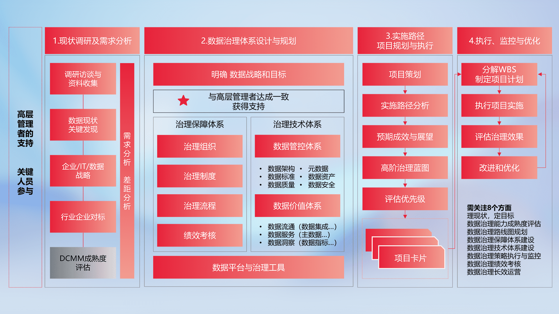 制定并执行统一的数据标准,,,规范数据定义和格式,,消除冗余和不一致性,,,实现跨部门和跨系统的数据一致性,,为企业提供标准化的数据基础。。